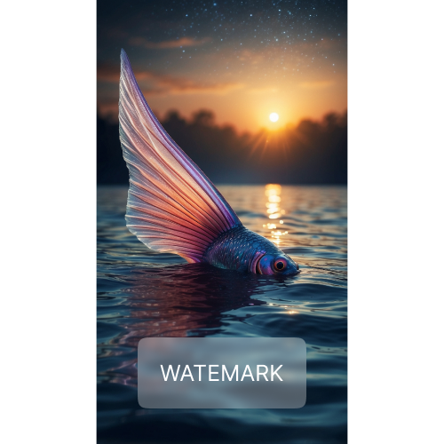 An enchanting fish with iridescent fins breaches the water's surface at twilight.