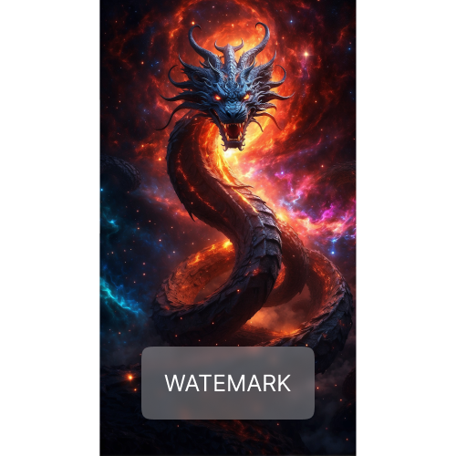The serpentine dragon coils against a cosmic backdrop, its scales glowing like molten rivers.