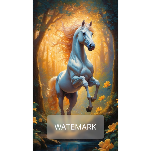 In an enchanted woodland glade, a resplendent white horse rears, its mane a cascade of golden sunlight.
