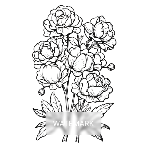 A sumptuous gathering of peonies, their petals intricately detailed, unfolds in this line art.