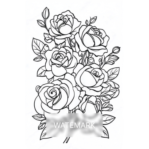 A cluster of roses in full bloom, illustrated in bold line art, evoke a timeless beauty.