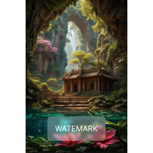 Nestled within an emerald canyon, a serene temple stands by a still pond.