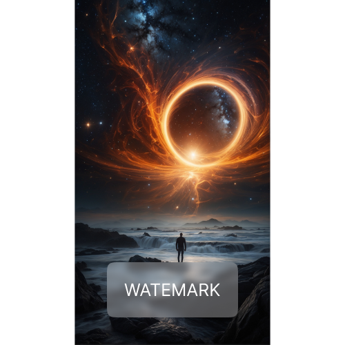A lone figure stands before a majestic cosmic swirl, where fiery tendrils spiral into a glowing celestial portal.