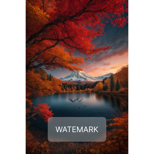 The fiery reds and oranges of autumn leaves frame a serene mountain lake.
