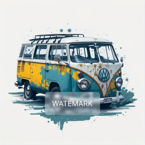 Vintage Voyage" depicts a classic Volkswagen bus in a vibrant yellow and teal.