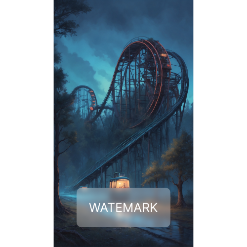 Trams glide through a misty forest at dusk, their lights casting a warm glow on the wet tracks.